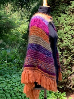 Talk -  er en strikkeoppskrift på en 70`talls , bohemsk, funky og Barcelona inspirert åpen poncho med knepping i