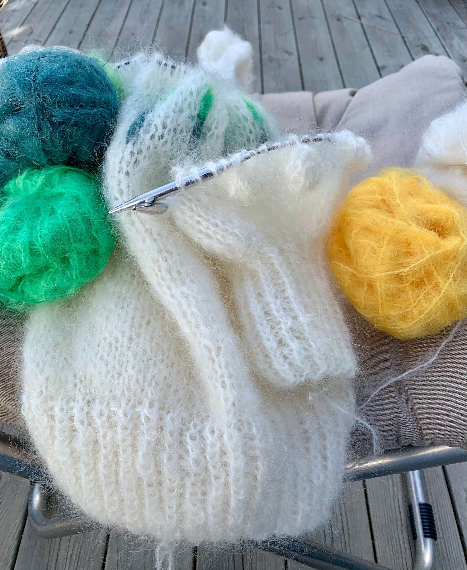 Knit lovely May - and embroider flowers either like here, or make it your own and find your favorite flowers.