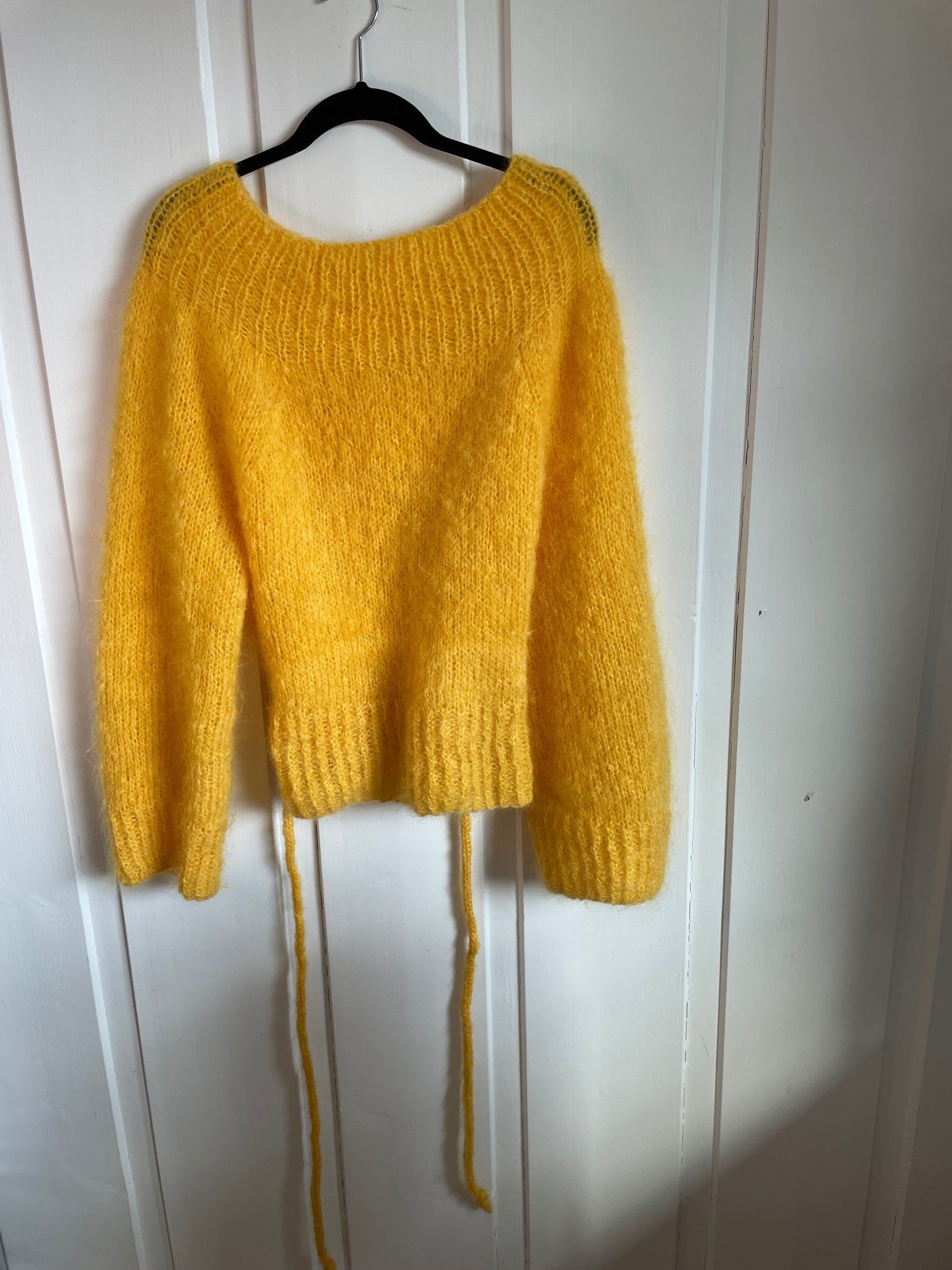 A soft and airy sweater with puff sleeves and a light, feminine look. Knitted from the bottom up in fluffy mohair that provides warmth without weight. A pattern designed to be easy to follow – and a garment you will actually wear.