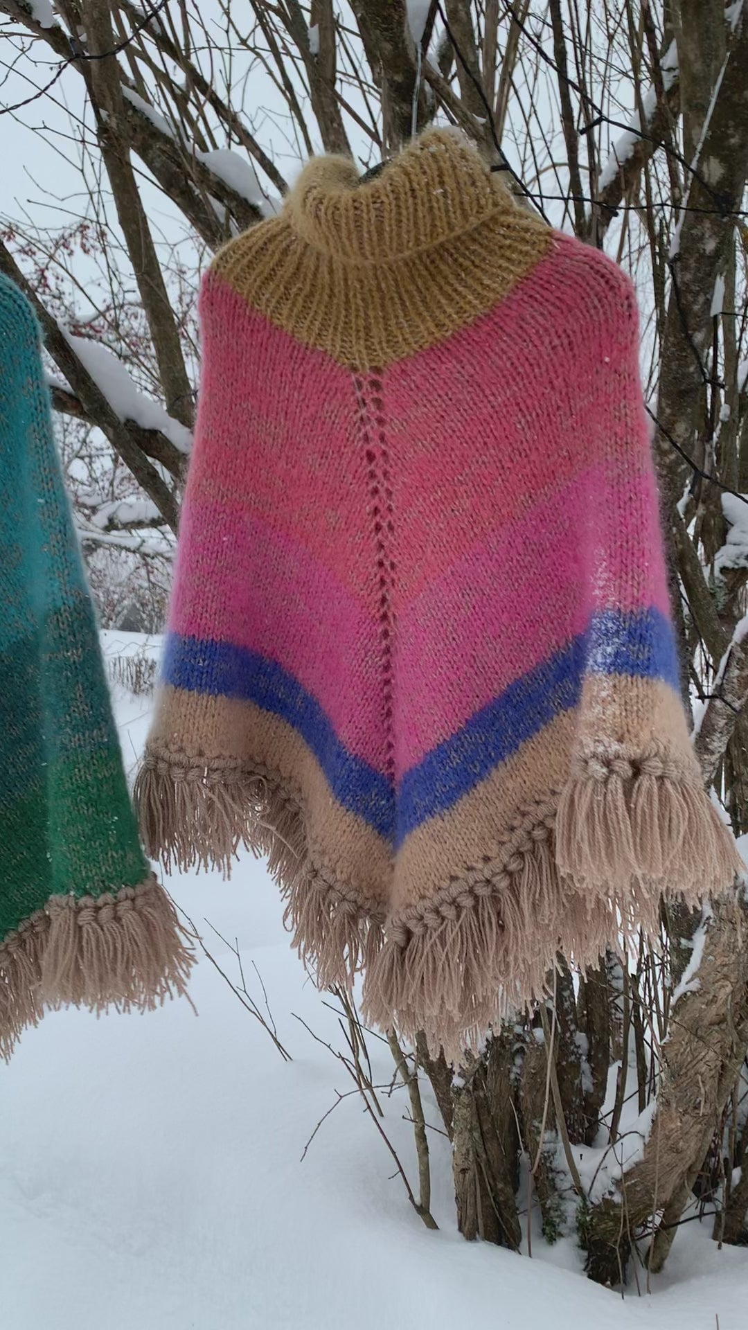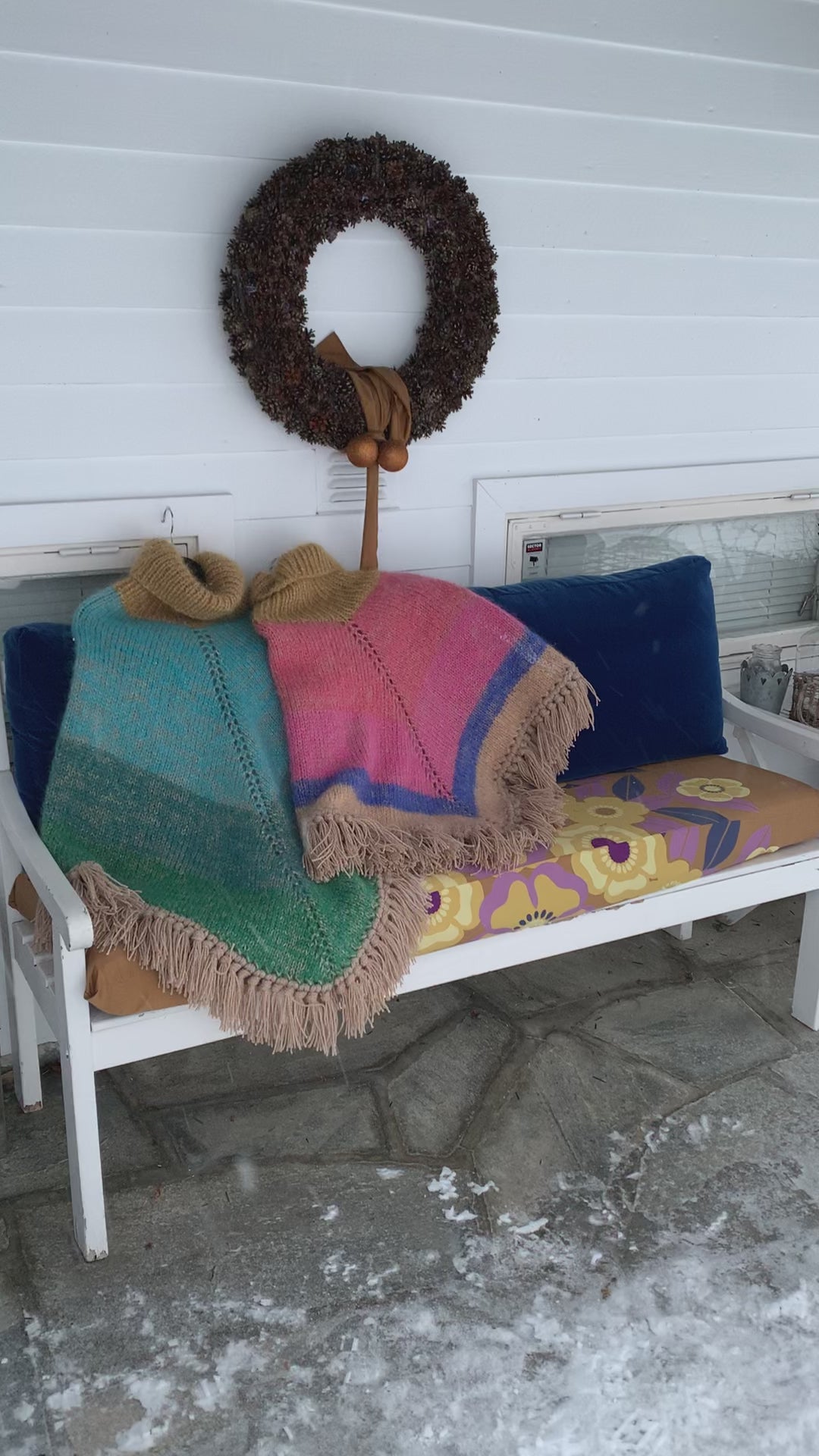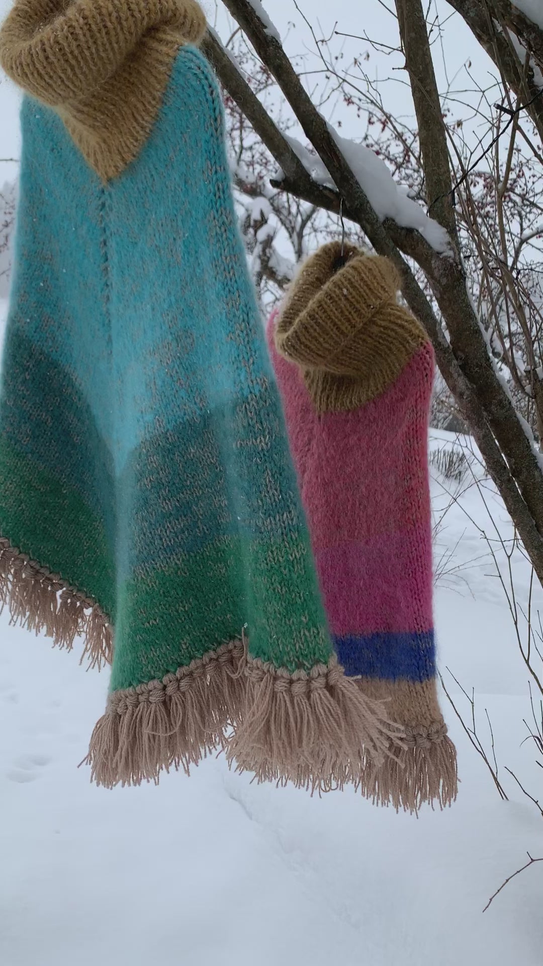 The Magic Woods - is a long and lined luxury poncho knitted in alpaca, gold and mohair, in colors taken from a magical, untouched forest. Imagine it styled over, for example, a simple white t-shirt and jeans on a balmy summer evening, or over your favorite dress. The alpaca yarn in this poncho comes from the alpaca Rusti, from the Bestebakken hotel in Hafslo.