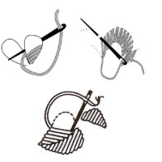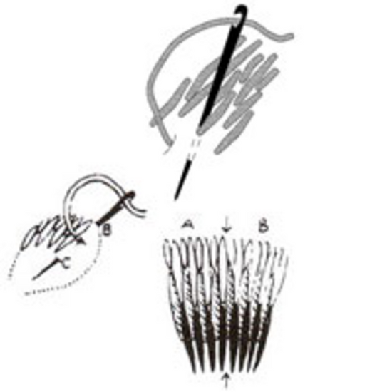 Langettsøm - broderes alltid mot høyre. Tråden legges undere nålespissen. Stingene kan være av ulik lengde, og legges med ulik tetteht eller i grupper. Brukes ofte til kantsøm, knapphull og til å feste applikasjoner med.