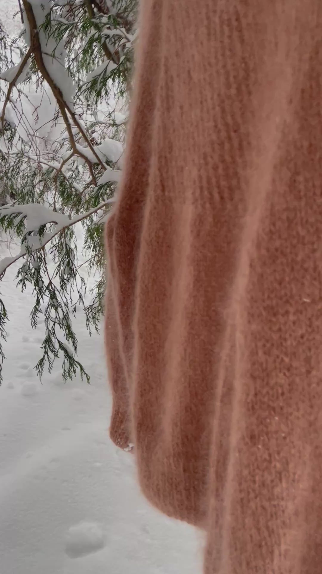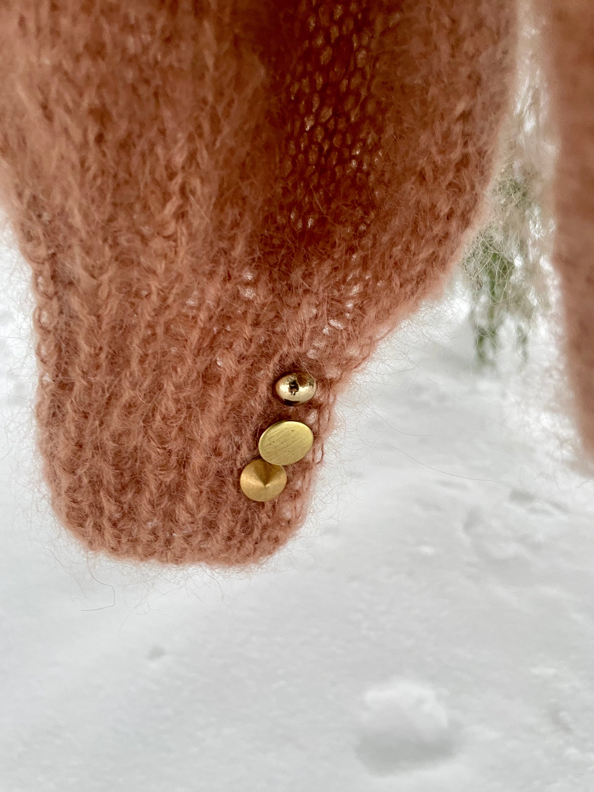 Rose er en lettere versjon av Arctic Snow Lux, strikket i myk mohair med puffermer, hullmønster i øvre del og vintage knapper på mansjettene.