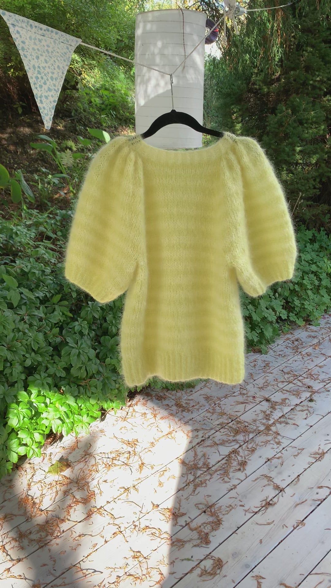 Sunrise - er en strikkeoppskrift på en klassisk lyse gul smalstripet puffgenser med ekstra vidde i pufferme og rund hals.